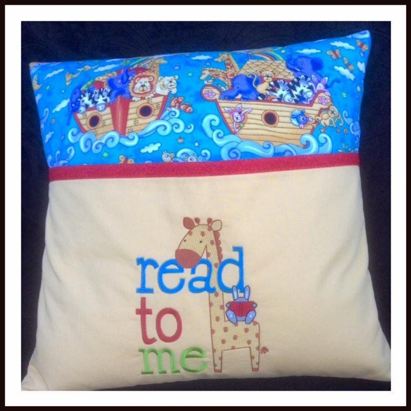 Lyn made this adorable reading pillow using a machine embroidery design from Children's Library Sentiments.