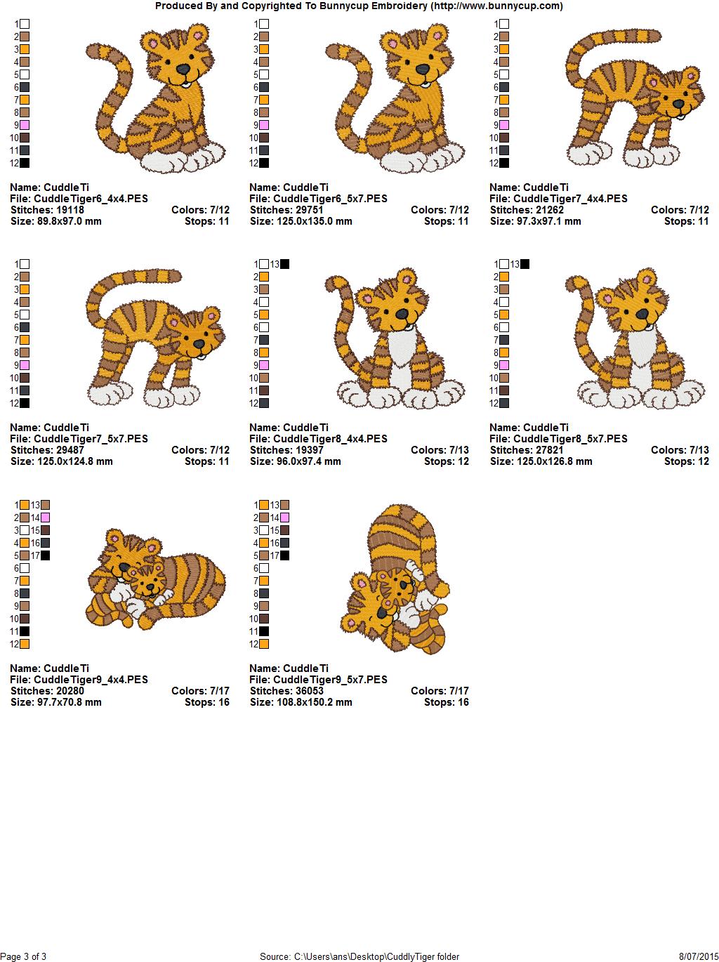 Are you a tiger lover? Then Cuddly Tiger is just the set for you - these adorable designs come in two sizes, one for the 4x4 hoop and one for the 5x7 hoop. PCS and SEW users please note that as your machines do not support a 5x7 hoop, the 5x7 size is not available in your format and PES has been provided instead. Wilcom EMB files are also included in the downloads for precise resizing with the Wilcom Truesizer software (a free resizing software available at the Wilcom website). See our full range of
