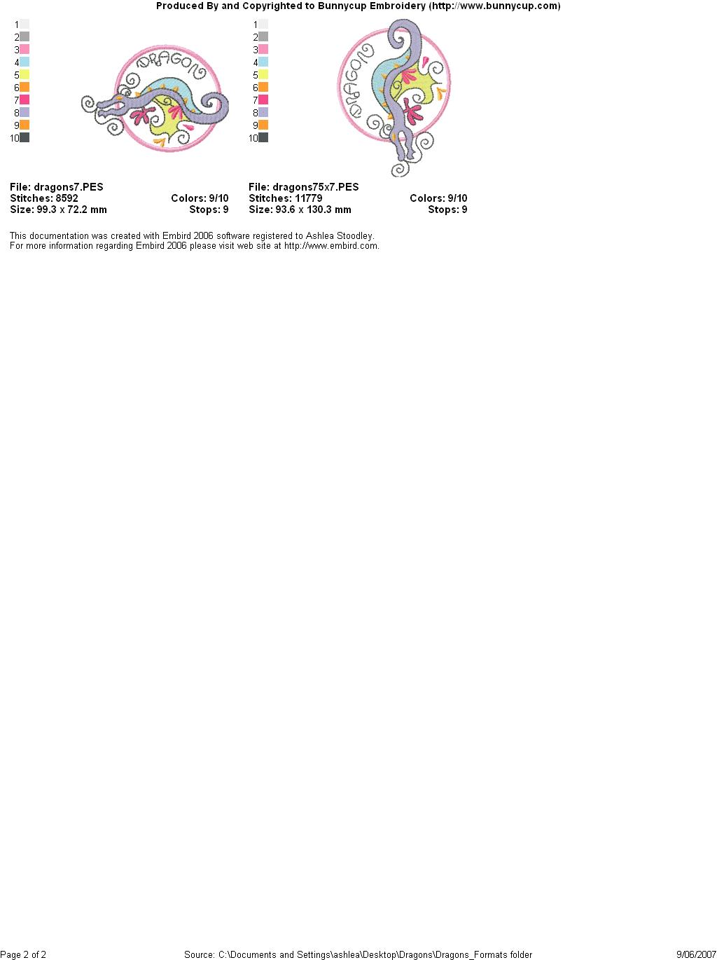 7 magical and whimsical dragon designs including both 4x4 and 5x7 hoop sizes. These embroidery designs are so unique and beautiful. SEW and PCS users, please note that 5x7 hoops are not avaliable in your format, so PES has been included for the 5x7 designs. Illustrations By Gaby Siewertsen. See our full range of