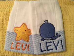 Sherri made these adorable burp cloths using embroidery designs from our Sea Creatures Collection.