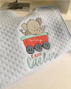Our instagram friend Akishugei made this adorable bib using an embroidery design from our Animal Train Collection.