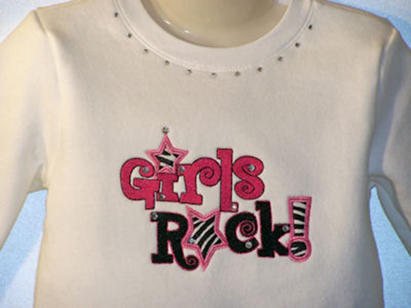 Kimra sent in this picture of an eye-catching girls shirt that she made using a Rock On design.