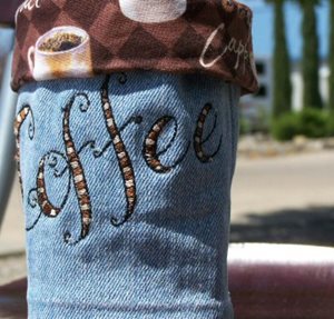 Amy sent in this darling Coffee Cozy that she sells at her etsy shop which uses Coffee Bean designs. What a terrific idea!