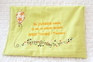 Judy sent in a picture of an adorable birthday bib she made for her great niece. Too cute!