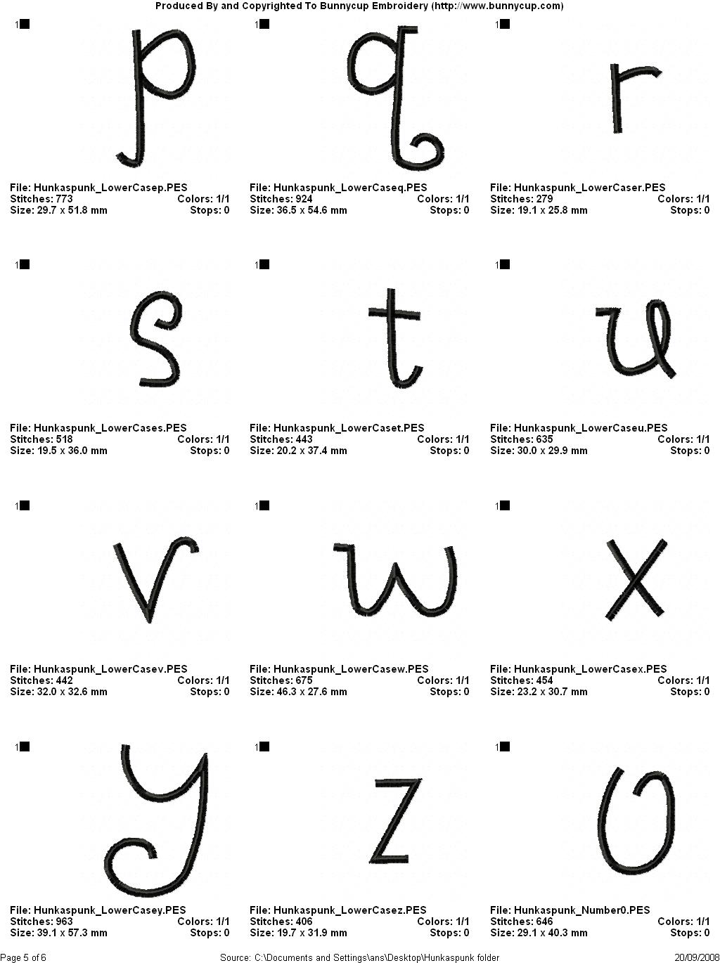 Hunkaspunk alphabet is a fun alphabet and the capitals stand around 1.7 inches tall (43 mm). The alphabet includes Capitals, Lower Case, Numbers and Characters. For more information on sizing please see the thread chart links below. See our full range of