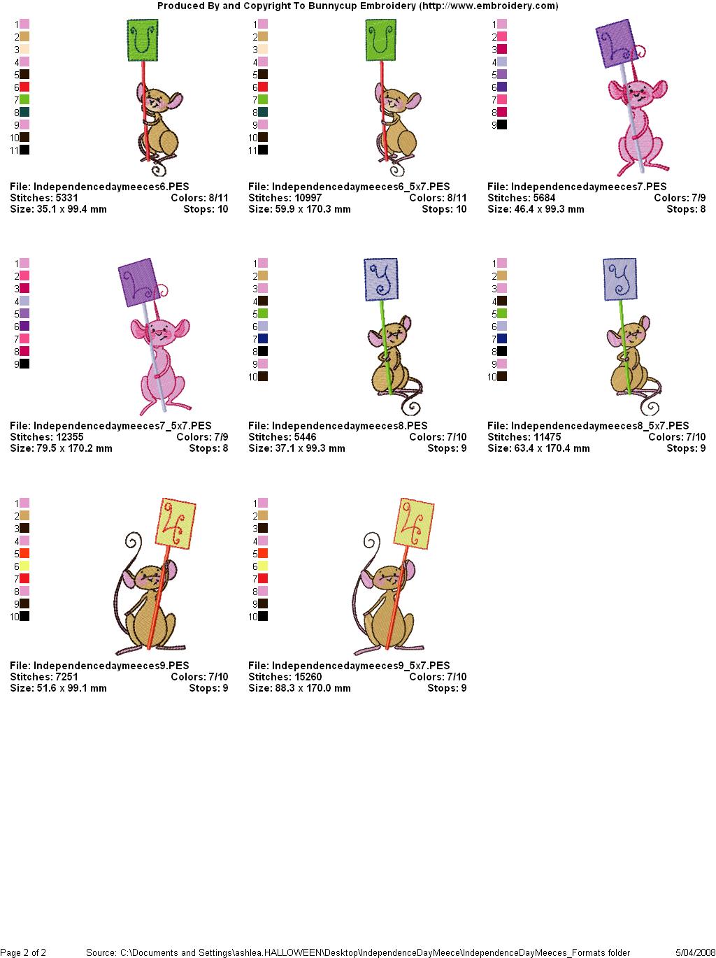 Independence Day Meeces are a sweet and fun set to celebrate the 4th of July. Make a great table runner or wall hanging spelling out July 4th. This set comes with both the 4x4 and 5x7 sizes. PCS and SEW users please note that as your machines do not support a 5x7 hoop, the 5x7 designs do not come in your format. Should you order in SEW or PCS, PES will be provided in your download for the 5x7 versions. See our full range of