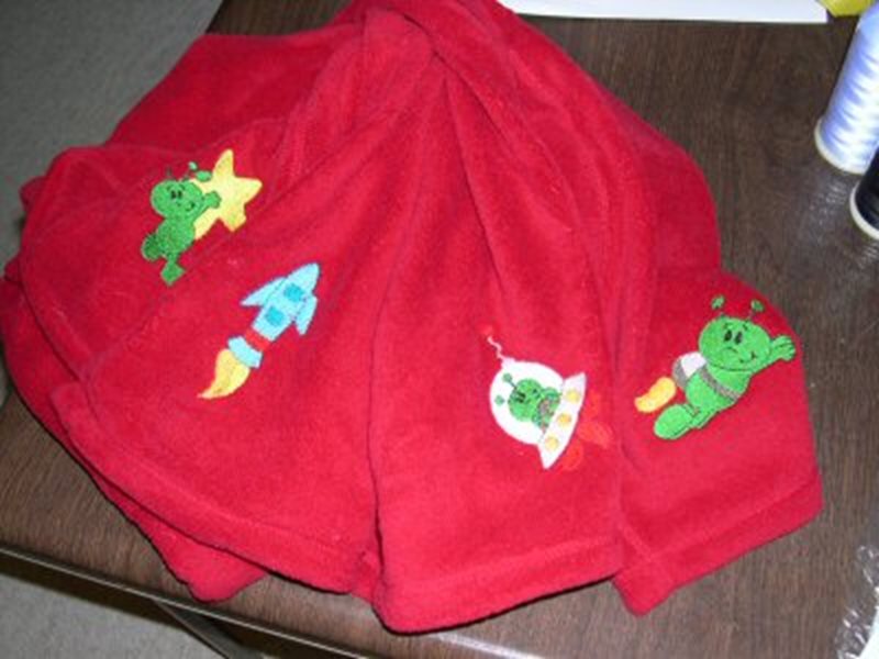Michelle created these darling microo chenille blankets and said "I've folded the blankets so you can see the designs on all 4 corners, etc. I'm also working on other projects and will forward photos of my samples. So far I've received many, many compliments. Thank you for such wonderful quality designs."
