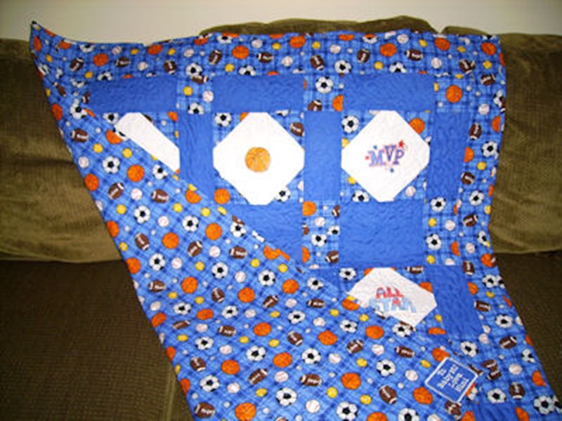 Becky sent in this eye catching quilt she made using designs from Sports and Sports Sentiments set. It was Beckys first time quilting and she did a wonderful job!